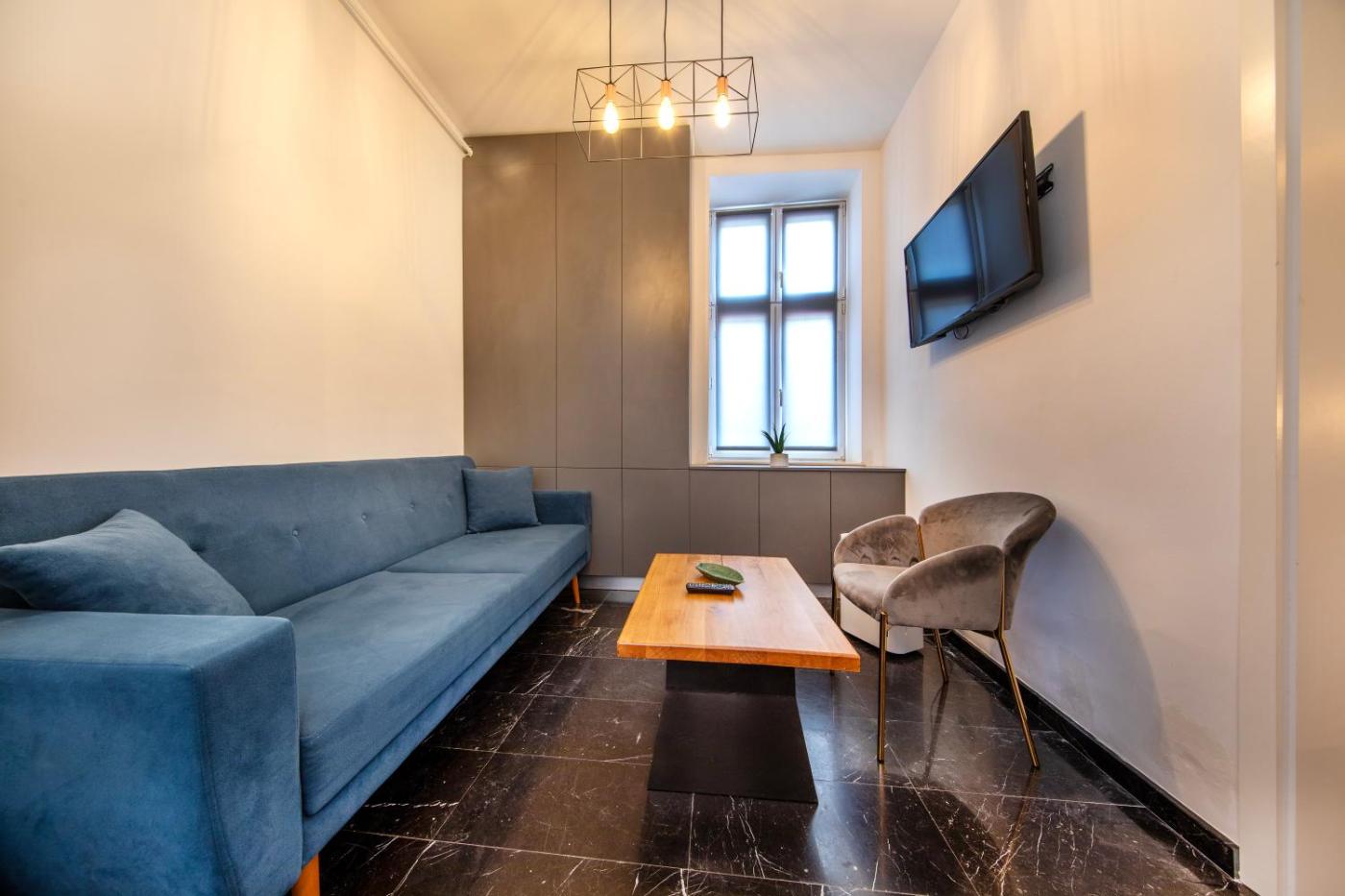 One-Bedroom Apartment. Boasting a private entrance, this apartment comes with a kitchen, 1 bedroom and 1 bathroom with a walk-in shower and a hairdryer. Guests can make meals in the kitchen that features a stovetop, a refrigerator, kitchenware and an oven. The apartment features a washing machine, soundproof walls, a tea and coffee maker, a flat-screen TV, as well as ancourtyard view. The unit has 1 bed.