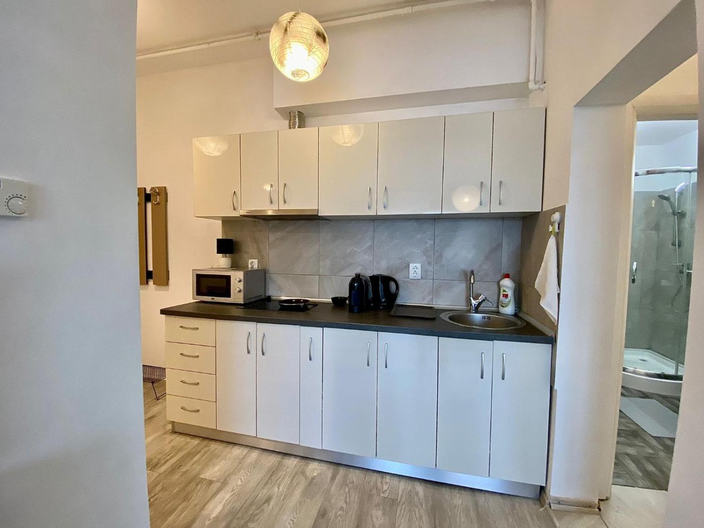 One-Bedroom Apartment. Boasting a private entrance, this air-conditioned apartment comes with 1 living room, 1 separate bedroom and 1 bathroom with a shower and a hairdryer. Guests can make meals in the kitchen that features a stovetop, a refrigerator and a microwave. This apartment has a washing machine, a tea and coffee maker, a flat-screen TV with cable channels and a balcony. The unit has 2 beds. ;