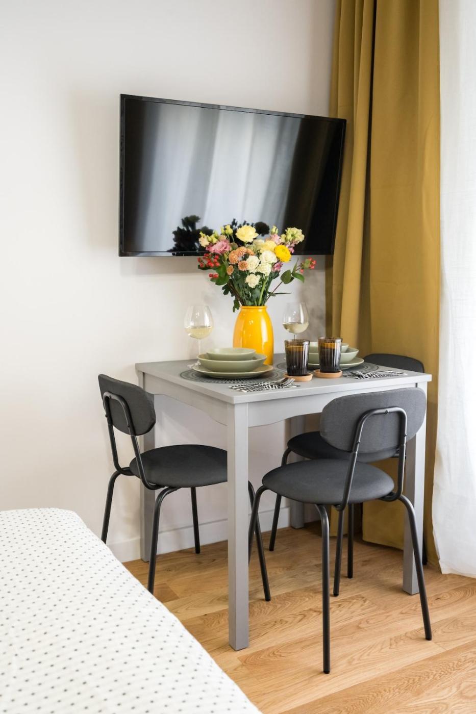 One-Bedroom Apartment. Guests can make meals in the kitchen that features a stovetop, a refrigerator, kitchenware and a toaster. This apartment is air-conditioned and has a flat-screen TV, a washing machine, a coffee machine and a wardrobe. The unit has 2 beds.