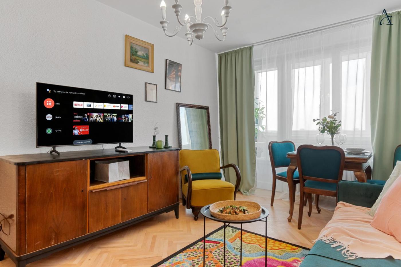 Apartment with Balcony. This air-conditioned apartment is comprised of 1 living room, 1 separate bedroom and 1 bathroom with a shower. Guests can make meals in the kitchen that is fitted with a stovetop, a refrigerator, a dishwasher and kitchenware. Featuring a balcony, this apartment also offers a washing machine, a tea and coffee maker and a TV. The unit offers 2 beds.