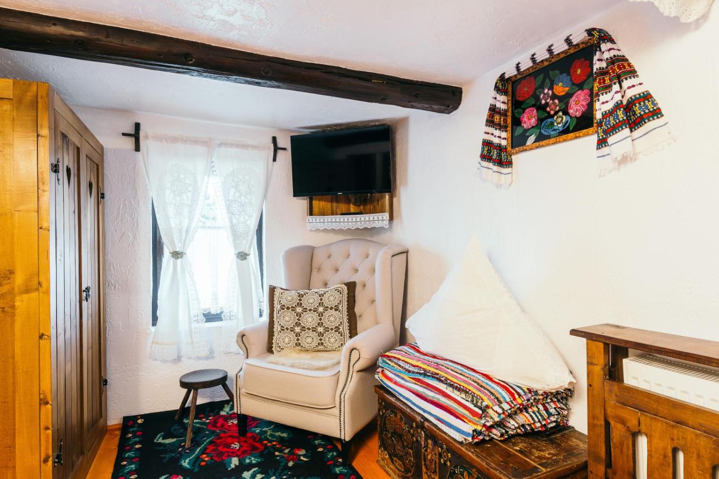 Cottage Elisabeta. This 100 years old restored house comprises 2 rooms, one with a double bed and an old traditional stove, and the second with a single bed. A private bathroom is also featured. ;