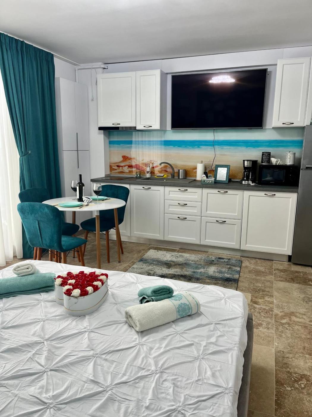 Located in Mamaia Nord, 200 metres from Mamaia Beach and 8.3 km from Siutghiol Lake, Bakuba - Studio pe plaja cu vedere la mare & loc parcare gratis offers air conditioning. This beachfront property offers access to a balcony, free private parking and free WiFi. The accommodation provides a lift and a minimarket for guests.