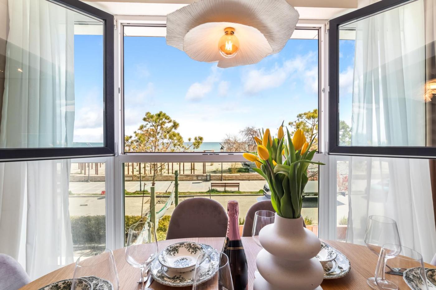 Two-Bedroom Apartment with Balcony and Sea View. This spacious apartment features 1 living room, 2 separate bedrooms and 2 bathrooms with a shower and a hairdryer. Guests can make meals in the kitchen that features a stovetop, a refrigerator, an oven and a microwave. The air-conditioned apartment features a flat-screen TV with cable channels, a washing machine, a coffee machine, a seating area as well as sea views. The unit has 3 beds.