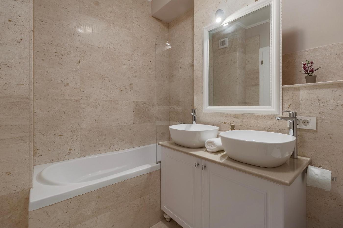 Three-Bedroom Apartment. This spacious apartment is comprised of 1 living room, 3 separate bedrooms and 2 bathrooms with a walk-in shower and a bath. Guests can make meals in the kitchen that comes with a stovetop, a refrigerator, a dishwasher and kitchenware. The air-conditioned apartment offers a flat-screen TV with cable channels, a washing machine, a coffee machine, a dining area as well as city views. The unit offers 4 beds.