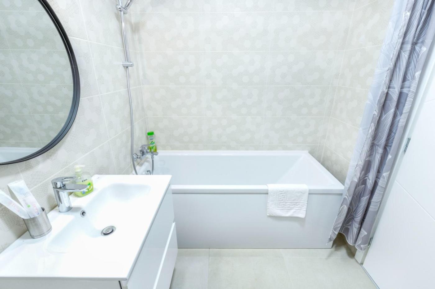 One-Bedroom Apartment. This spacious apartment comprises 1 living room, 1 separate bedroom and 1 bathroom with a bath or a shower and free toiletries. The apartments kitchen, which features a refrigerator and a tea and coffee maker, is available for cooking and storing food. Featuring a balcony, this apartment also provides air conditioning, a washing machine and a flat-screen TV. The unit offers 2 beds.