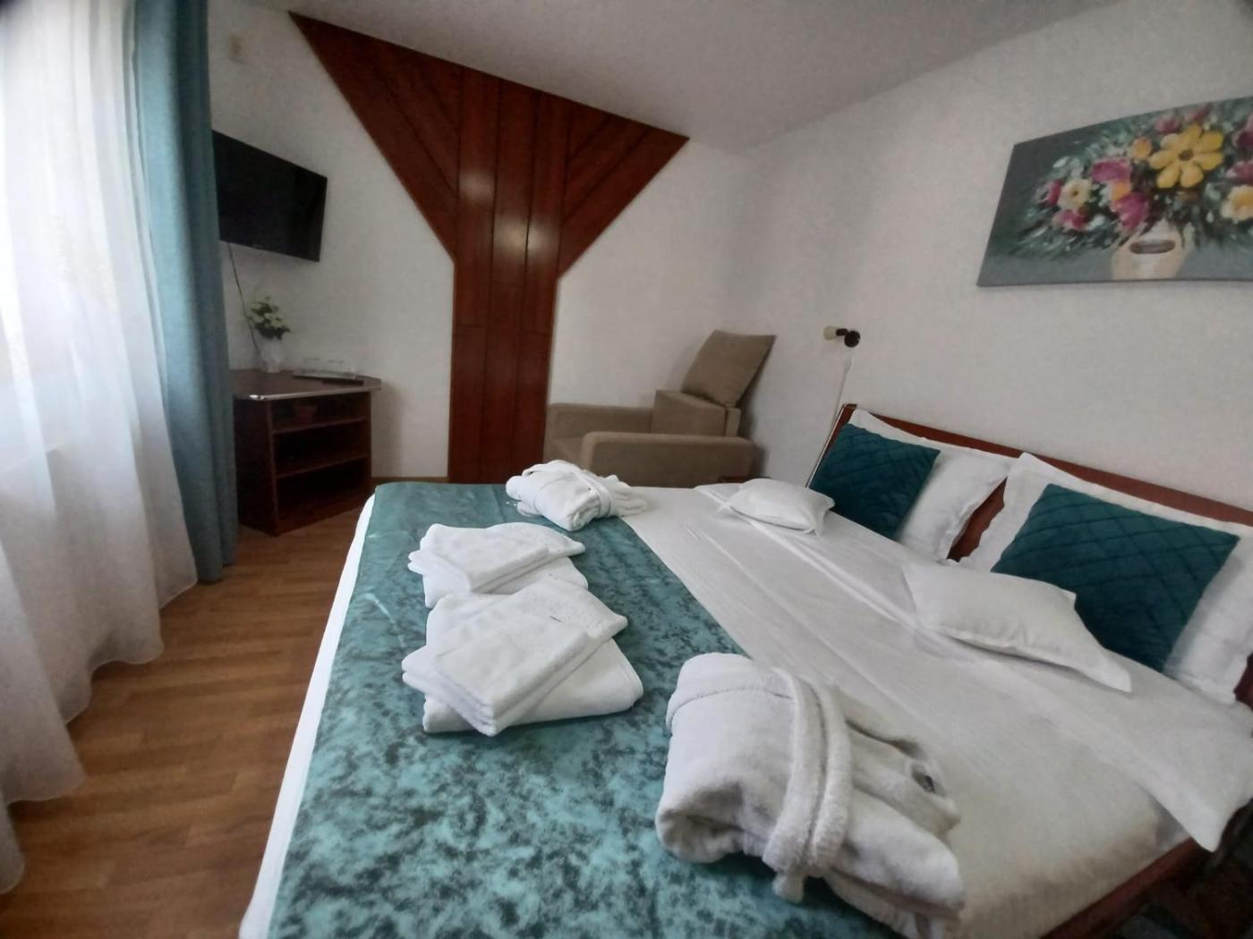 Double Room. This double room offers a fireplace. Providing free toiletries and bathrobes, this double room includes a private bathroom with a shower, a bidet and a hairdryer. Featuring a balcony with mountain views, this double room also provides a private entrance and a flat-screen TV with cable channels. The unit offers 2 beds. ;